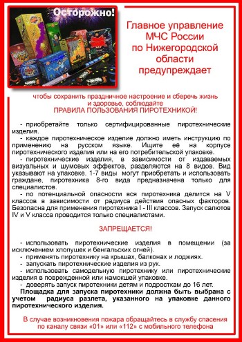 Памятка по применению гражданами бытовых пиротехнических изделий